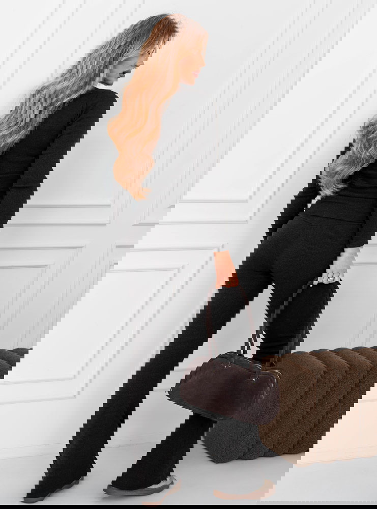 Czarny prążkowany komplet bluzka i spodnie Gracelynn to szybki sposób na dopracowany look w jednym kroku. Klasyczny kolor ułatwia stylizowanie i pasuje do wielu dodatków.