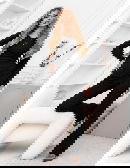 Czarny prążkowany komplet bluzka i spodnie Gracelynn