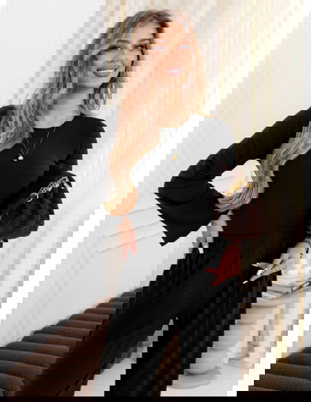 Czarny komplet szerokie spodnie i bluzka Ralayne to zestaw, który od razu wygląda jak gotowa, dopracowana stylizacja. Klasyczna czerń sprawia, że łatwo dopasujesz do niego dodatki i stworzysz różne wersje looku. Bluzka ma prostą, elegancką linię, a rozszerzane rękawy dodają jej modnego charakteru. Taki detal sprawia, że całość wygląda ciekawiej, nawet przy minimalnej biżuterii. Szerokie spodnie pięknie układają się w ruchu i tworzą efekt wydłużonych proporcji. Pas w talii nadaje sylwetce ładny kształt i pomaga zbudować zgrabną linię. To komplet, który sprawdza się wtedy, gdy chcesz wyglądać stylowo bez długiego planowania. Możesz nosić go razem, ale też rozdzielić i wykorzystywać elementy w innych zestawach. W zależności od butów całość może wyglądać bardziej miejsko albo bardziej elegancko. To propozycja, po którą sięga się często, bo pasuje do wielu okazji i nastrojów.