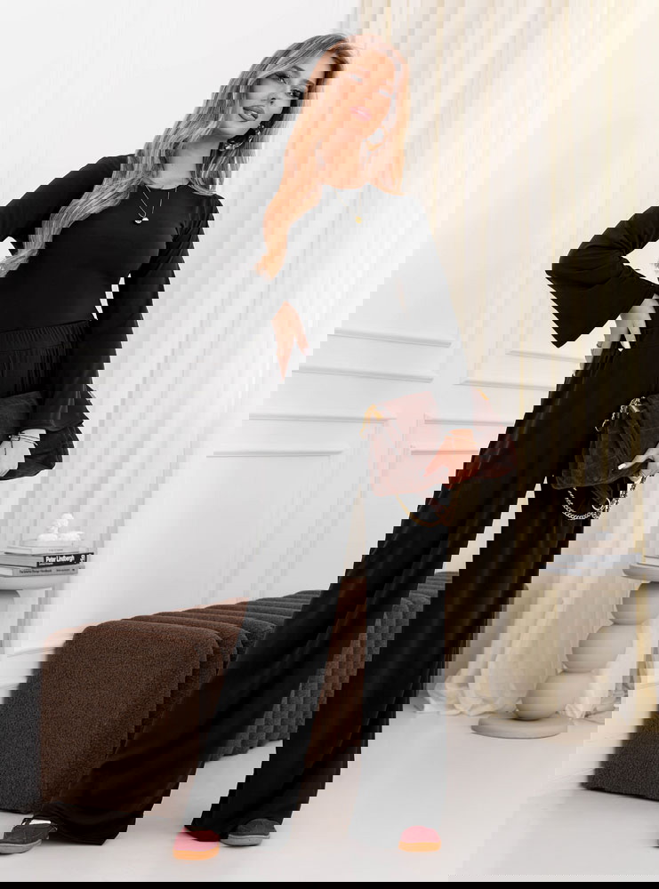 Czarny komplet szerokie spodnie i bluzka Ralayne sprawdzi się na co dzień, gdy chcesz wyglądać schludnie i stylowo. Będzie świetny na wyjście na miasto, spotkanie na kawę czy zakupy.