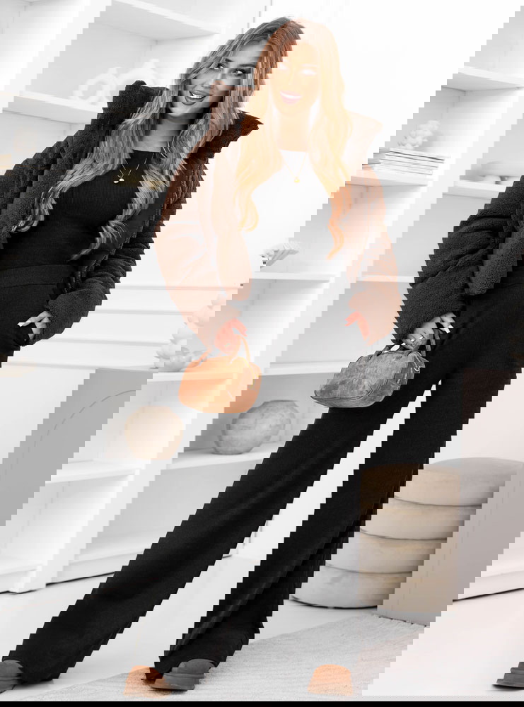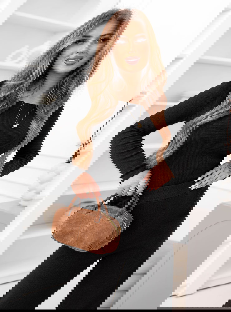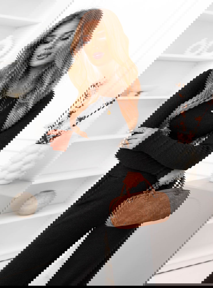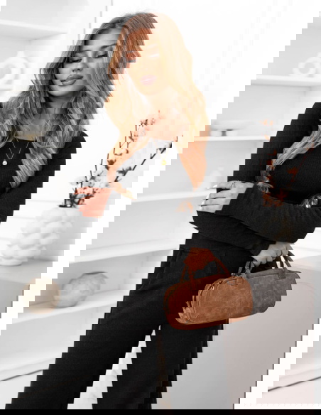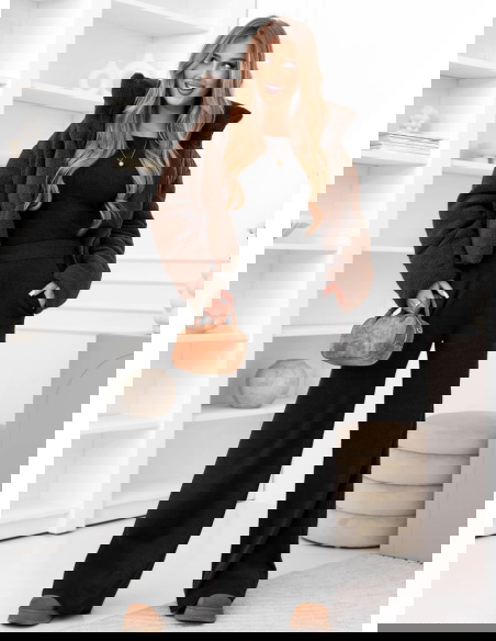 Czarny prążkowany komplet bluzka i szerokie spodnie Minarose to stylizacja, która wygląda spójnie od pierwszego założenia. To świetna propozycja, gdy chcesz wyglądać elegancko, a jednocześnie czuć się swobodnie przez cały dzień. Klasyczna czerń sprawia, że zestaw jest ponadczasowy i łatwy do dopasowania do dodatków. Prążkowana struktura dodaje całości charakteru i sprawia, że komplet nie jest „zwykłą bazą”. Bluzka ma dopasowaną linię, która ładnie podkreśla sylwetkę i wygląda bardzo schludnie. Długie rękawy wprowadzają równowagę i sprawiają, że zestaw prezentuje się stylowo także w chłodniejsze dni. Szerokie spodnie tworzą modną linię i pięknie układają się w ruchu. Taki krój optycznie wydłuża nogi i dodaje sylwetce lekkości. To komplet, który daje efekt dopracowanego looku bez długiego zastanawiania się nad stylizacją. Jeśli lubisz rzeczy uniwersalne, ale z wyraźnym akcentem, ten zestaw szybko stanie się jednym z ulubionych.