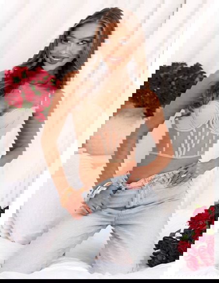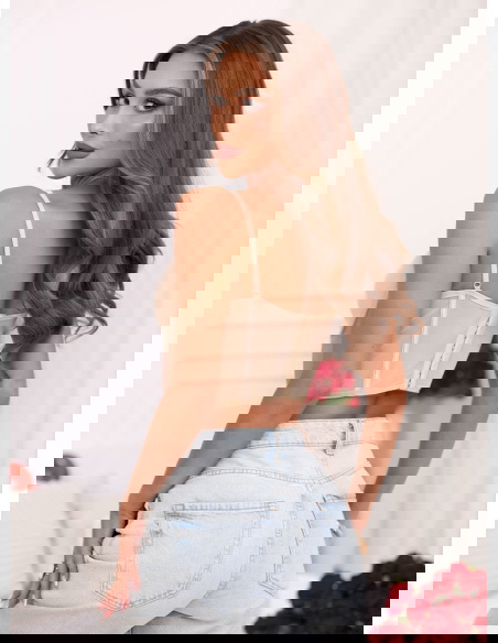 Najmocniej gra gorsetowa konstrukcja z pionowymi przeszyciami. To one nadają całości wyraźny rytm i sprawiają, że góra wygląda konkretnie, ale nadal lekko. Dobrze współgra z wysokim stanem albo z warstwą noszoną na wierzchu, jak koszula czy marynarka.