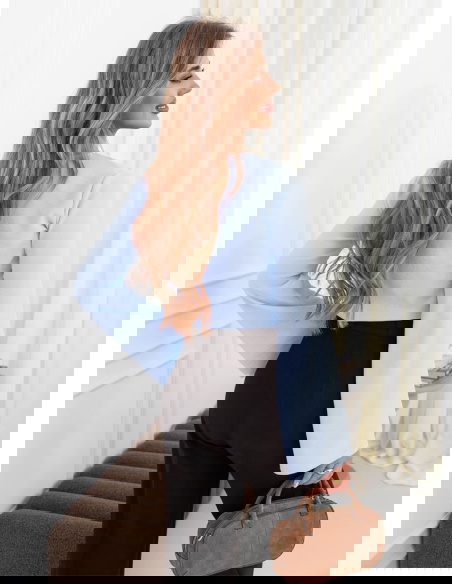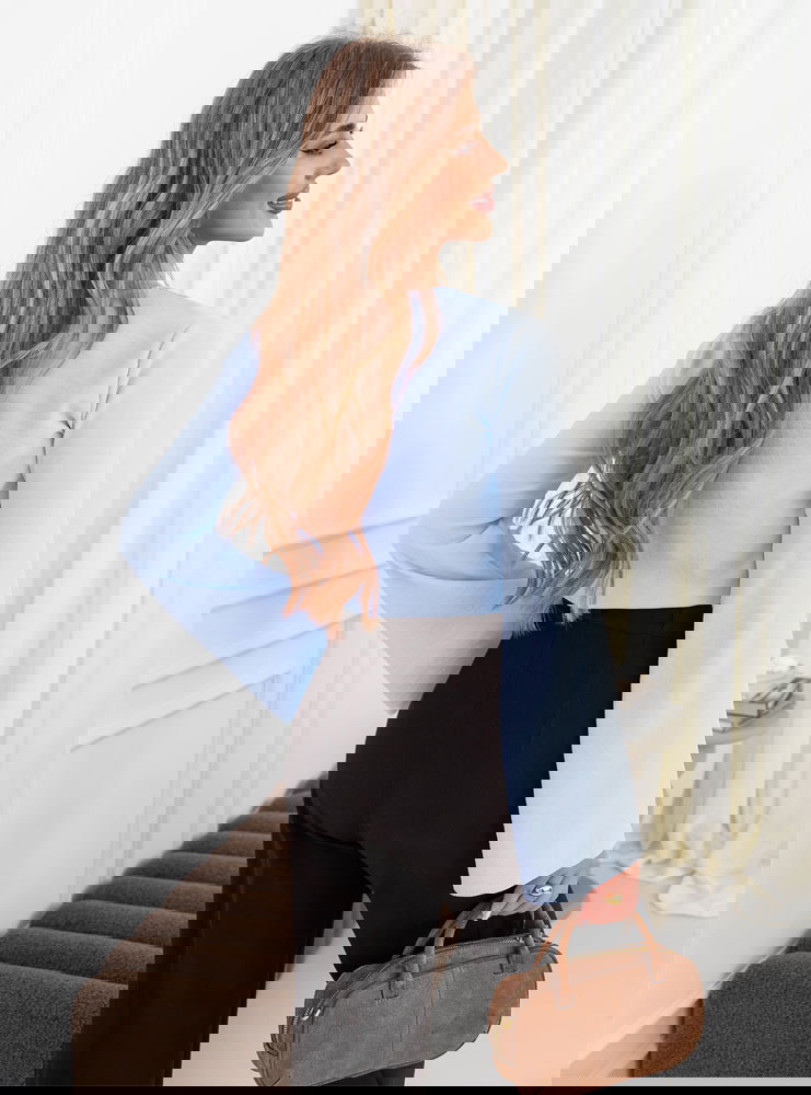 Jak ją nosić? Na szybko: jeansy z wysokim stanem, pasek, sneakersy i krótka kurtka, a do tego mała torebka. Na miasto: dopasowana spódnica, botki na słupku, dłuższe okrycie i delikatna biżuteria przy szyi. Bardziej ‘wow’: spodnie z szeroką nogawką, marynarka narzucona na ramiona, buty na obcasie i większe kolczyki.