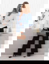 Kluczowy detal to te rozszerzane rękawy. Przyciągają wzrok do góry i sprawiają, że nawet gładki dół wygląda ciekawiej. Najlepiej wypada, gdy wsuniesz ją do środka i zostawisz rękawy jako główny akcent, a dół wybierzesz prosty albo dopasowany.