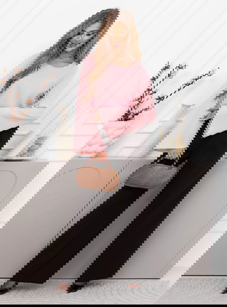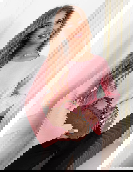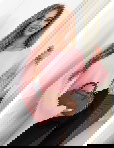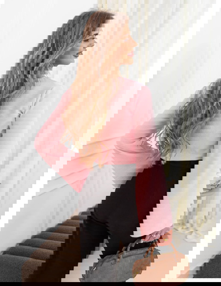 Pudrowa bluzka z szerokimi rękawami...