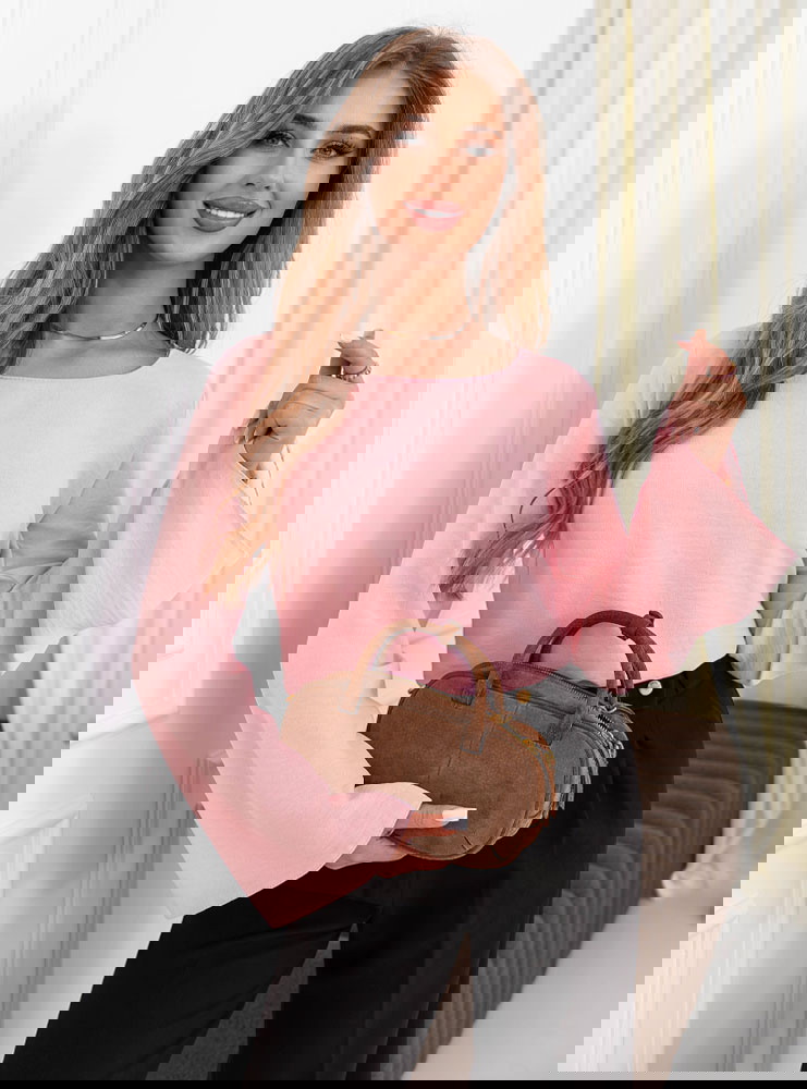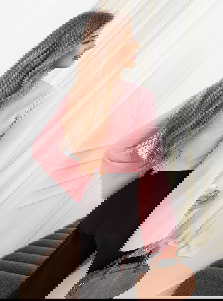 Pudrowa bluzka z szerokimi rękawami Darelle