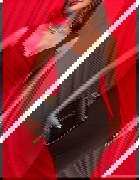 Jak ją nosić? Na szybko: czarne sandałki na obcasie + mała torebka + delikatny naszyjnik. Na miasto: botki na obcasie + krótka marynarka + torebka na ramię. Bardziej „wow”: szpilki + kopertówka + wyraziste kolczyki.