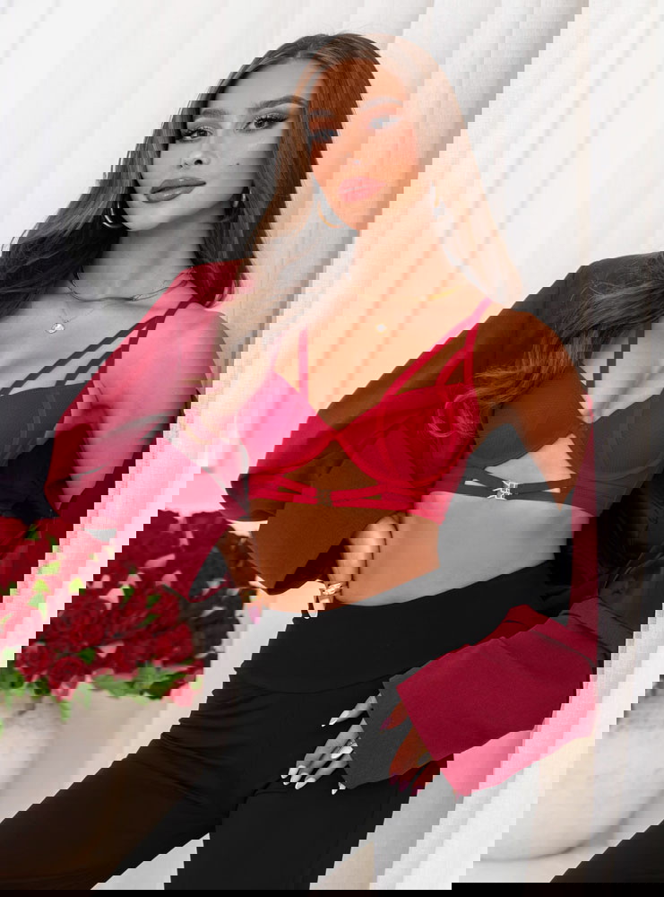 Bordowy biustonosz z ozdobnymi strapsami Nadhya