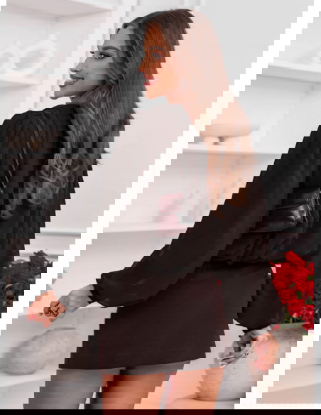 Czekoladowa bluzka z bufiastymi rękawami Valentine