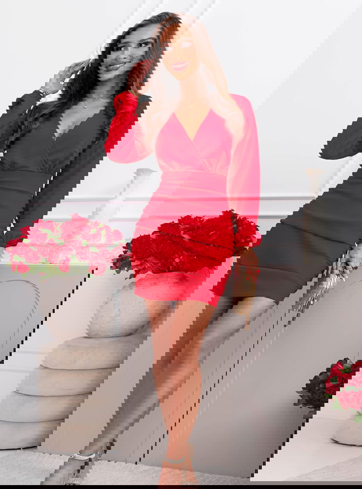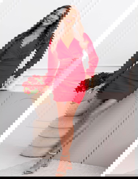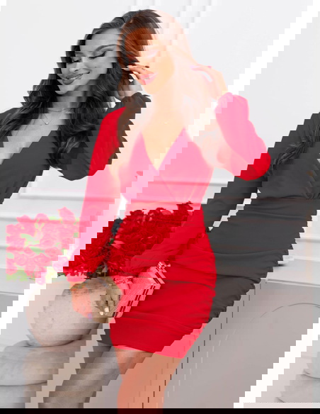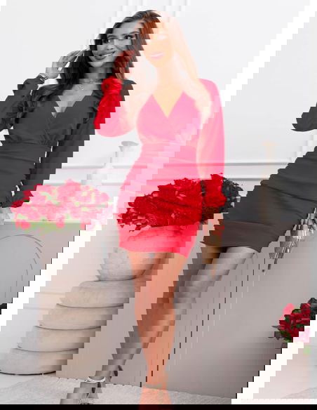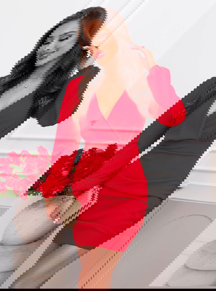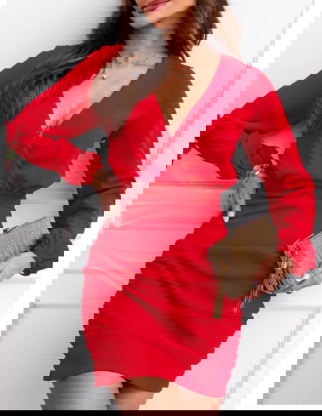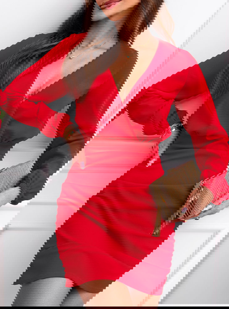 Malinowa sukienka mini z przekładanym dekoltem Halette