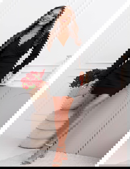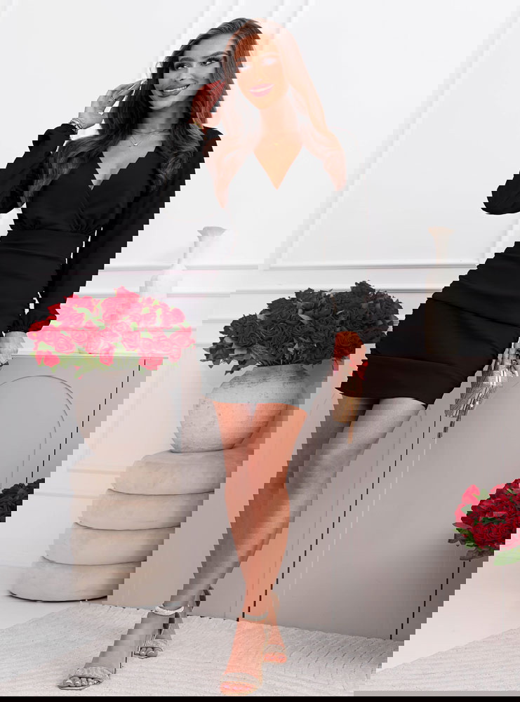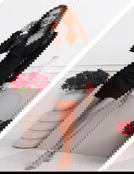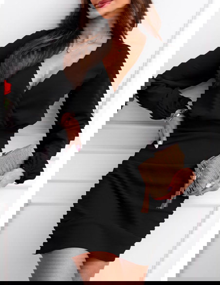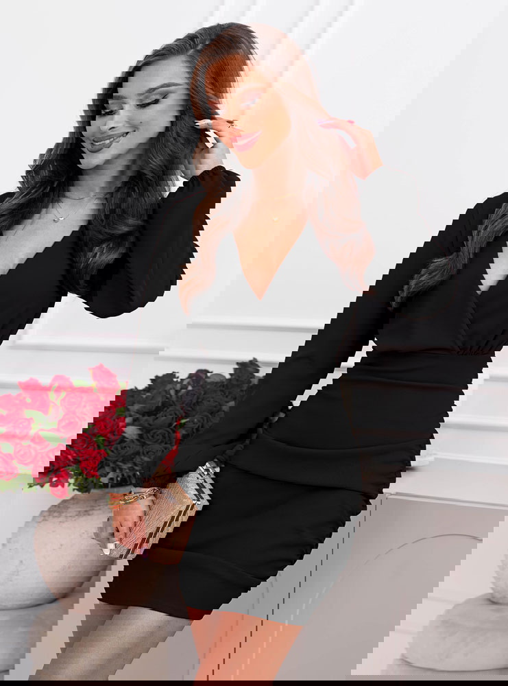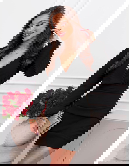 Czarna sukienka mini z przekładanym dekoltem Halette