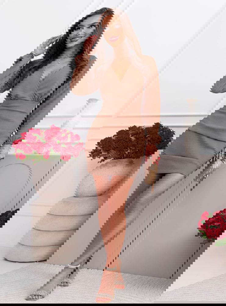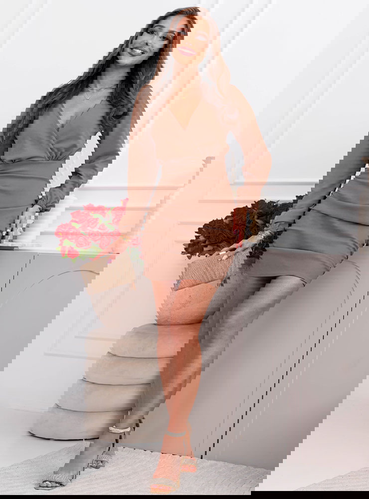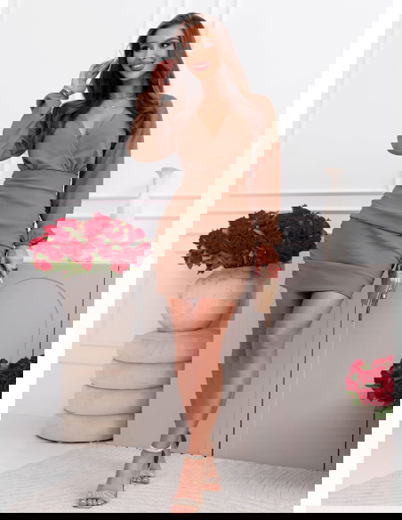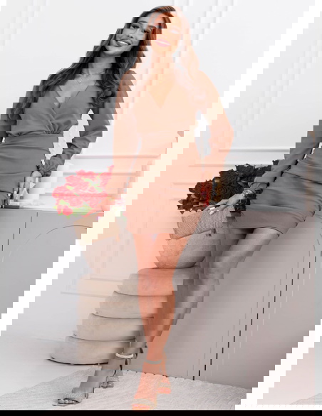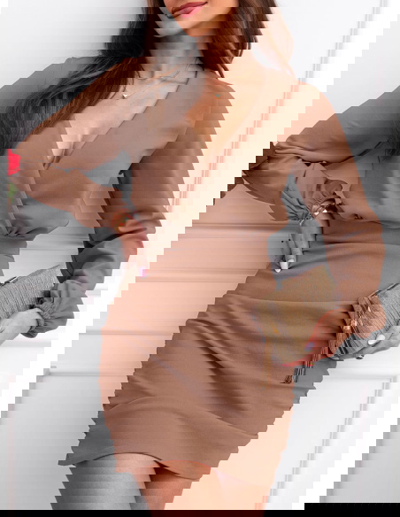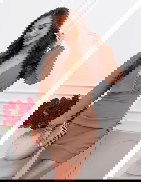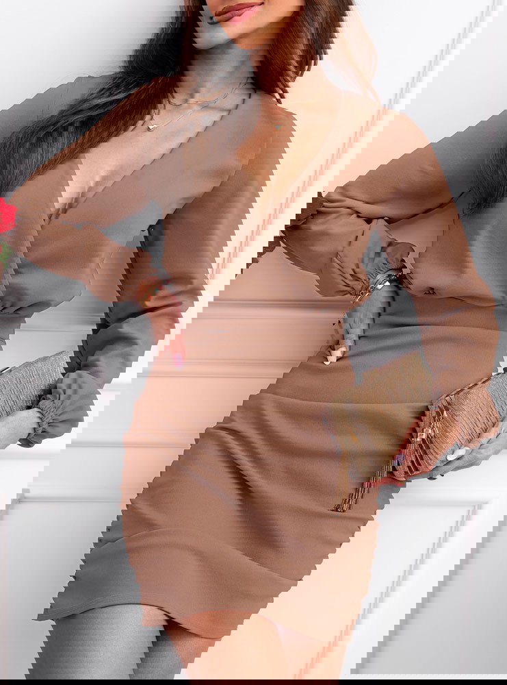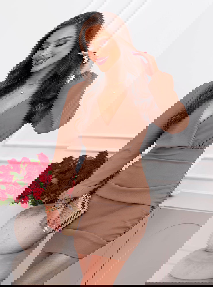 Sukienka mini z przekładanym dekoltem Halette - mocha mousse