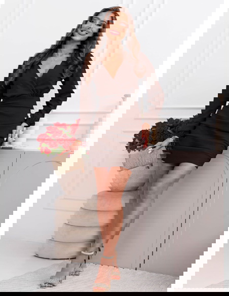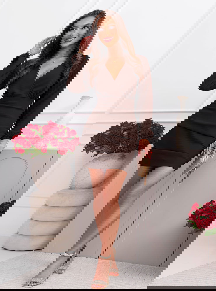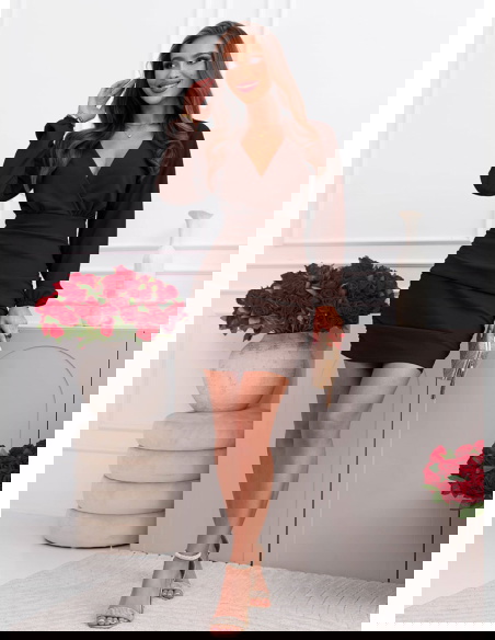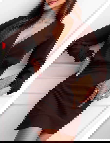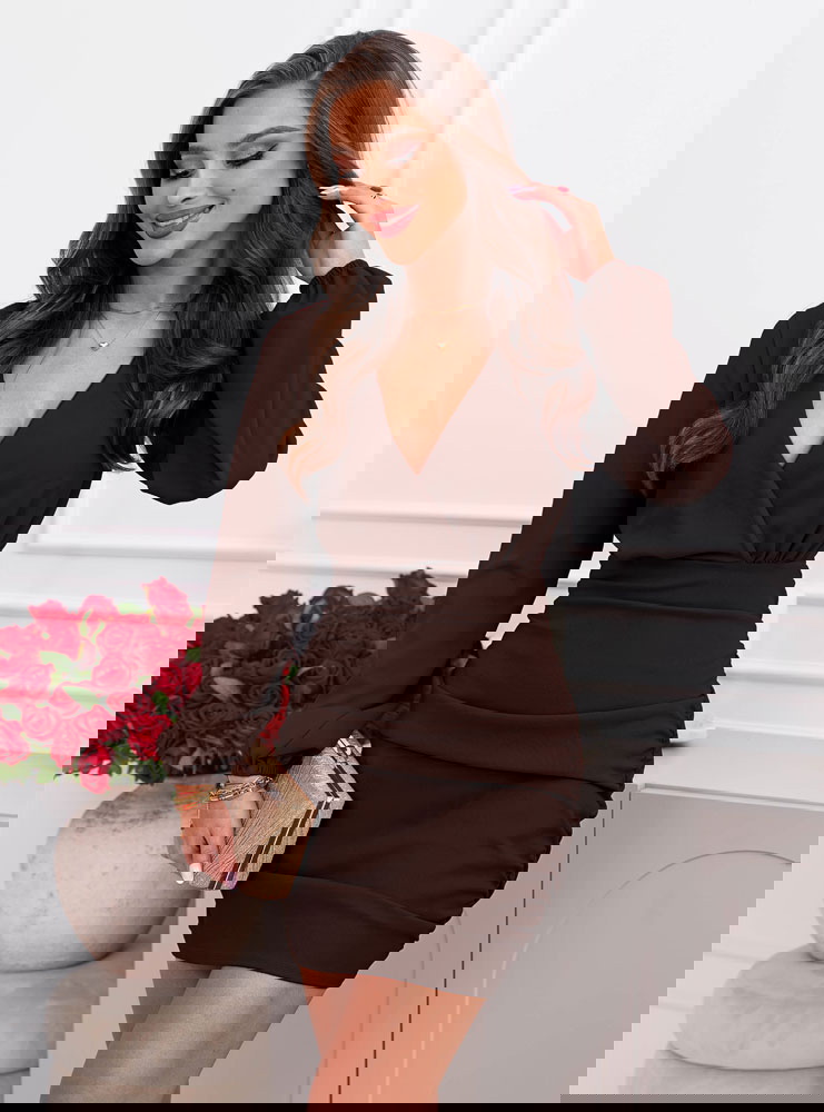 Czekoladowa sukienka mini z przekładanym dekoltem Halette