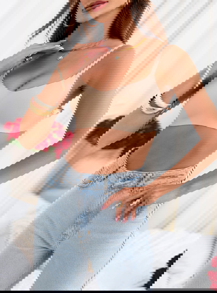 Beżowy biustonosz bez fiszbin Karmella