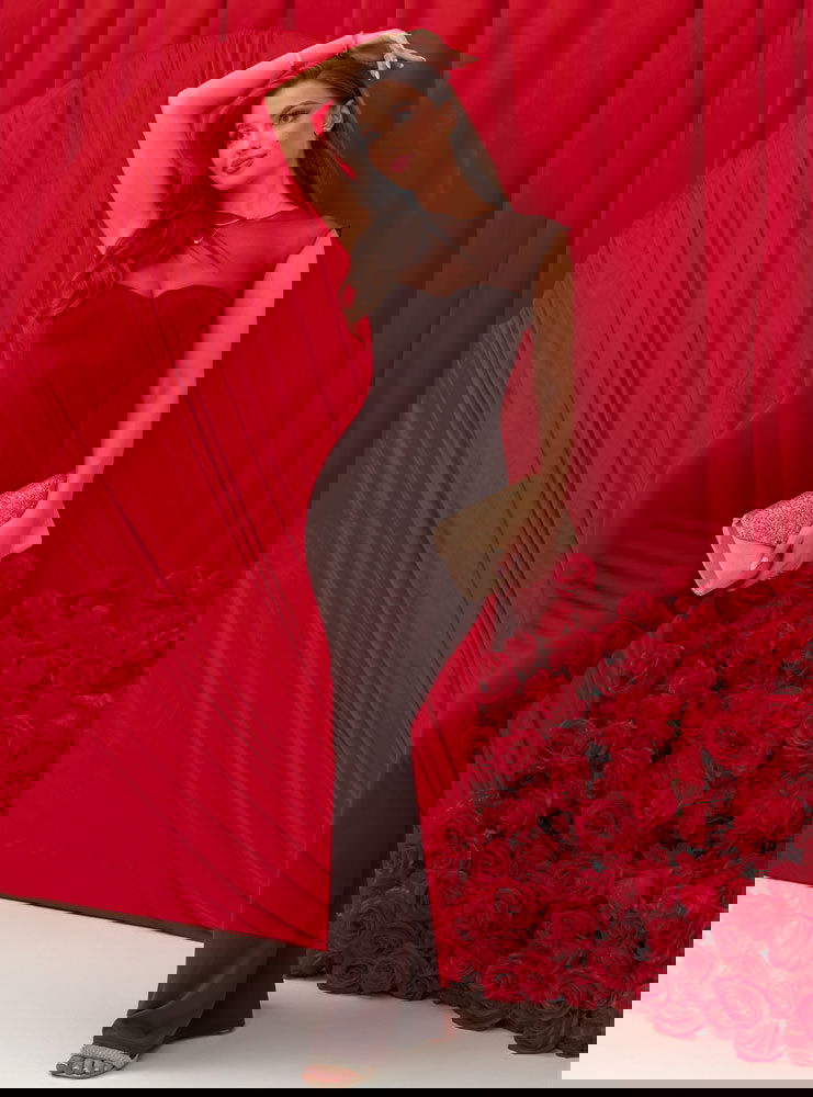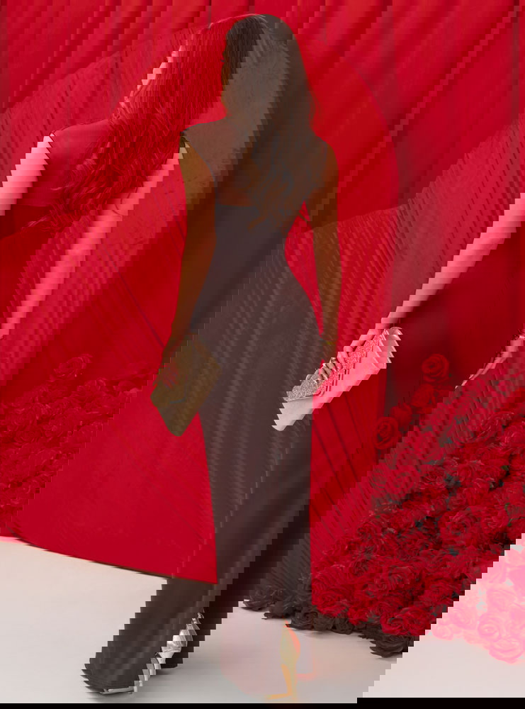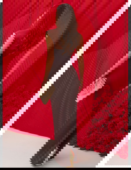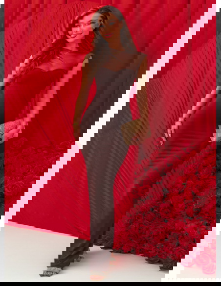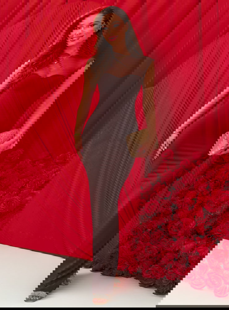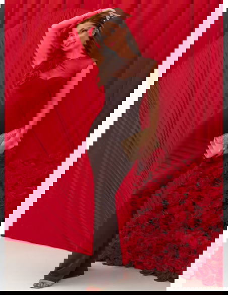 Czekoladowa dopasowana długa sukienka Wemmo