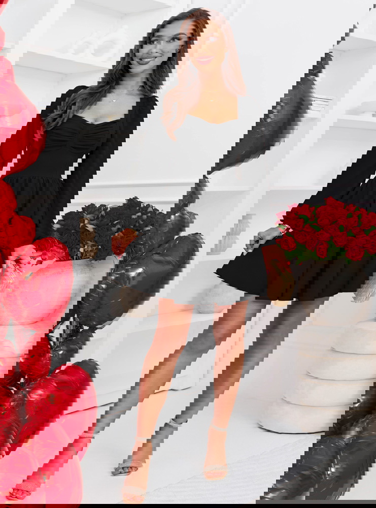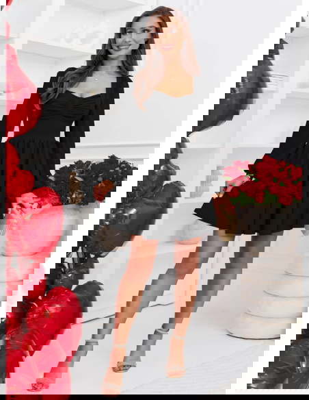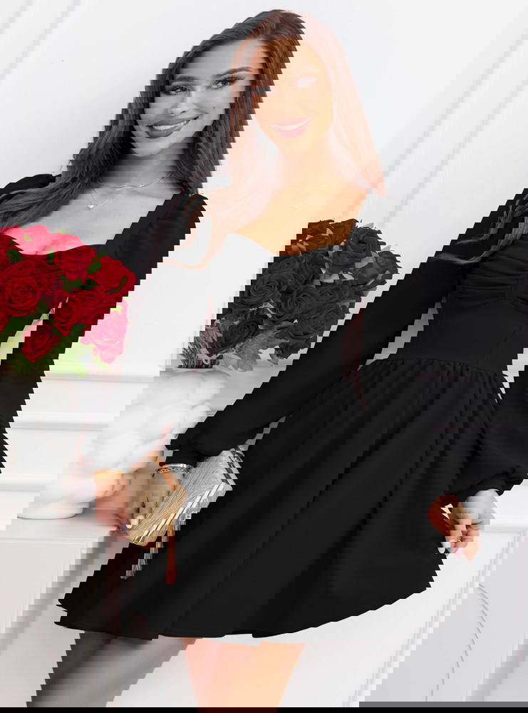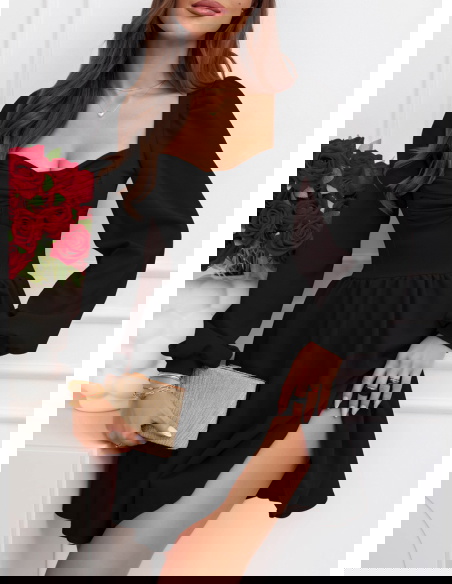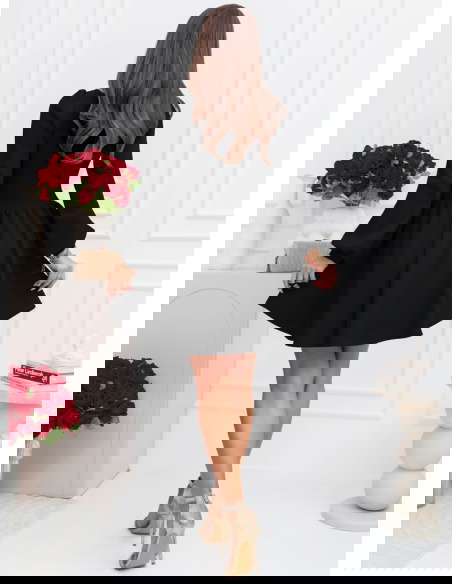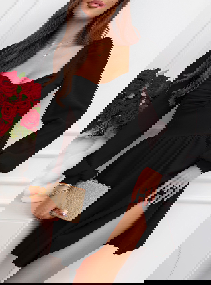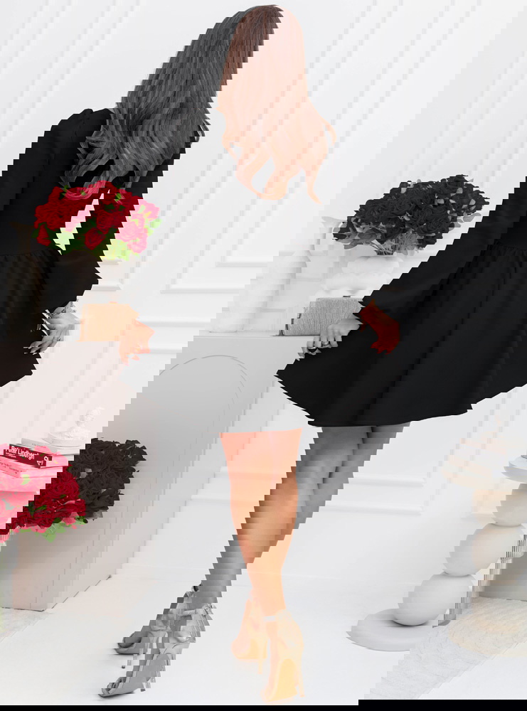 Czarna rozkloszowana sukienka z bufiastymi rękawami Lovenna
