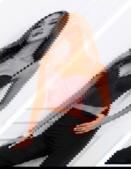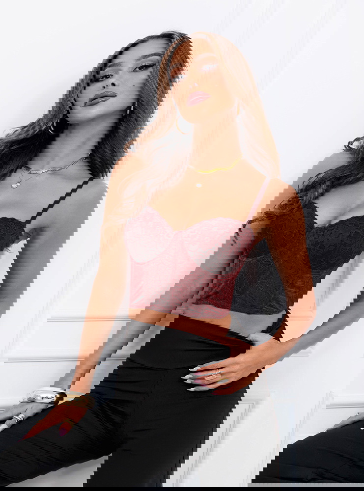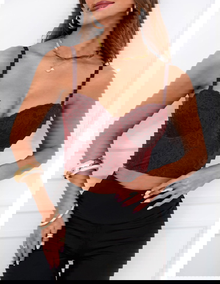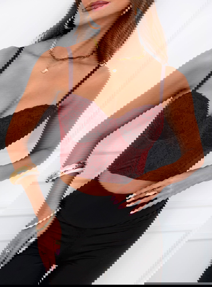 Bordowy stanik gorsetowy z koronką Loesie