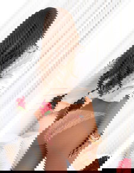 Pudrowe koronkowe majtki z ozdobnymi cyrkoniami Ammense