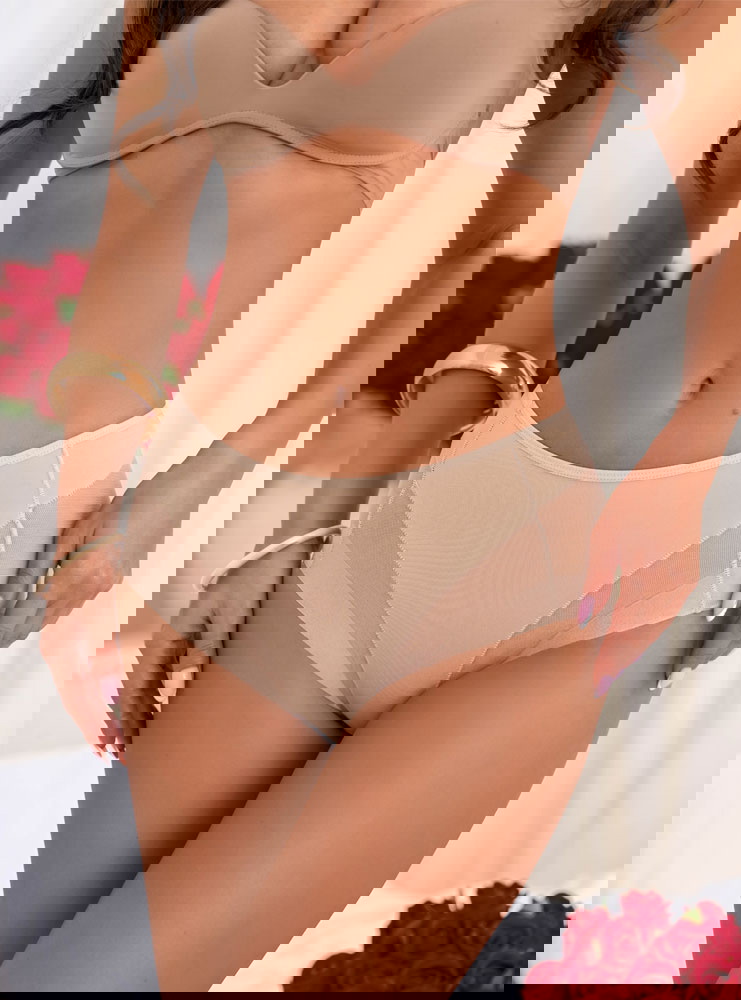 Model został zaprojektowany tak, aby łączyć komfort z dyskretnym modelowaniem. Wstawki z siateczki nadają całości nowoczesnego charakteru i sprawiają, że forma wygląda lekko, a jednocześnie schludnie. Beżowy odcień idealnie stapia się ze skórą, dzięki czemu majtki pozostają niemal niewidoczne pod jasnymi stylizacjami.