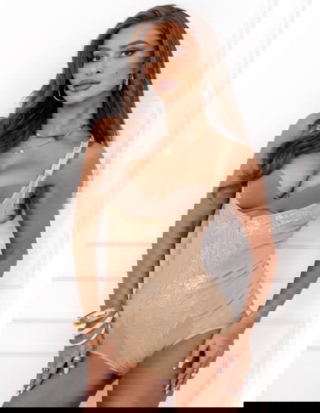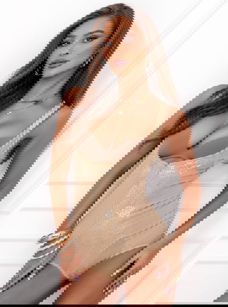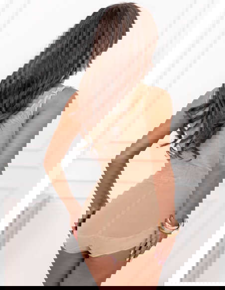 Beżowe body modelujące Alimmo to elegancka i dopracowana propozycja, która delikatnie modeluje sylwetkę i nadaje jej harmonijną, smukłą linię. Fason miękko dopasowuje się do ciała, podkreślając talię oraz biust, a jednocześnie zachowuje lekkość dzięki subtelnym wstawkom z siateczki i koronkowym detalom. Całość prezentuje się kobieco i estetycznie, bez wrażenia ciężkiej bielizny modelującej.