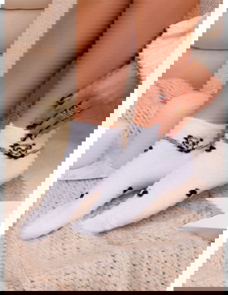 Skarpetki z ozdobnym motywem Nommi – wzór 3 to uroczy i miękki dodatek, który wyróżnia się subtelnym, kontrastowym motywem na jasnym tle. Delikatne detale nadają im lekko zabawny charakter, a całość wygląda świeżo i bardzo przyjemnie w odbiorze. To model, który świetnie wpisuje się w cozy estetykę i domowy klimat.