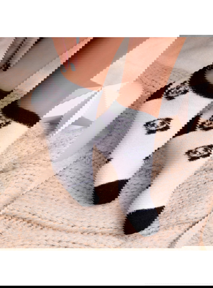 Skarpetki z ozdobnym motywem Nommi – wzór 4 to miękki i przyjemny dodatek, który przyciąga uwagę kontrastowym motywem na jasnym tle. Krótszy fason sprawia, że prezentują się lekko i nowocześnie, a ozdobny detal dodaje im uroku i swobodnego charakteru. Całość idealnie wpisuje się w cozy, domowy klimat.