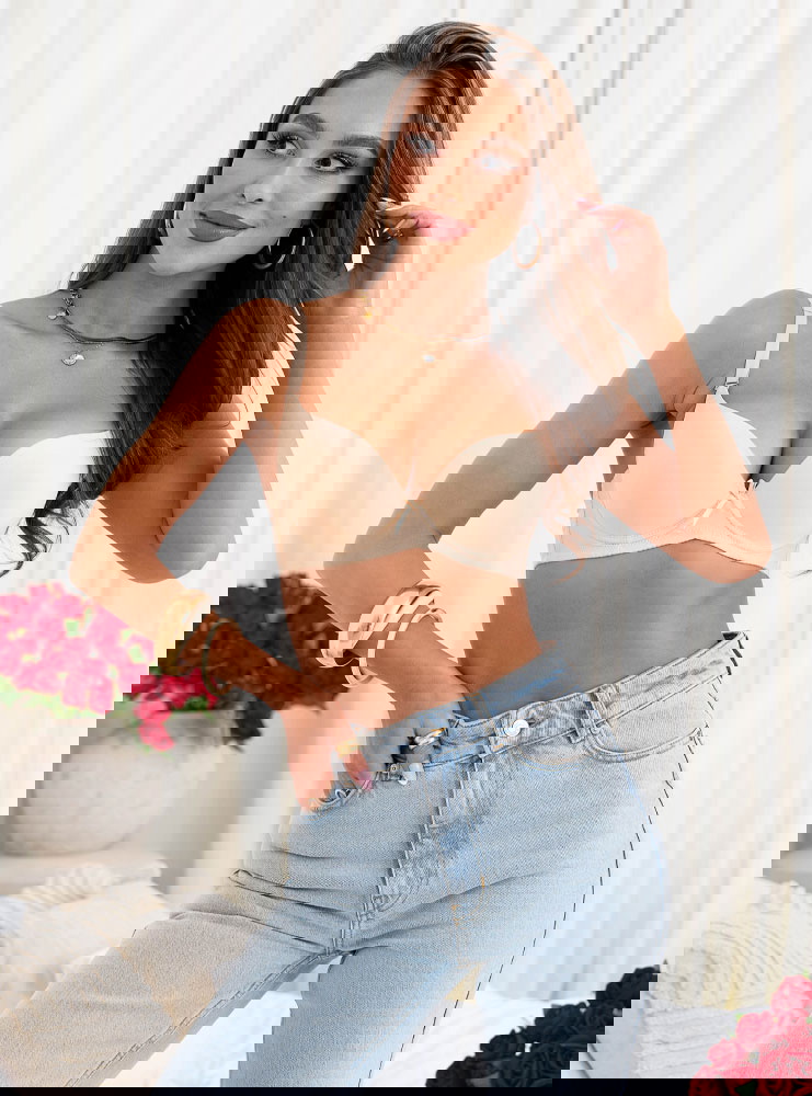 Neutralny, beżowy odcień sprawia, że to idealny wybór do jasnych stylizacji oraz dopasowanych krojów. Całość wygląda lekko i kobieco, bez zbędnych detali, co czyni ten model wyjątkowo praktycznym. To baza, po którą sięga się intuicyjnie.