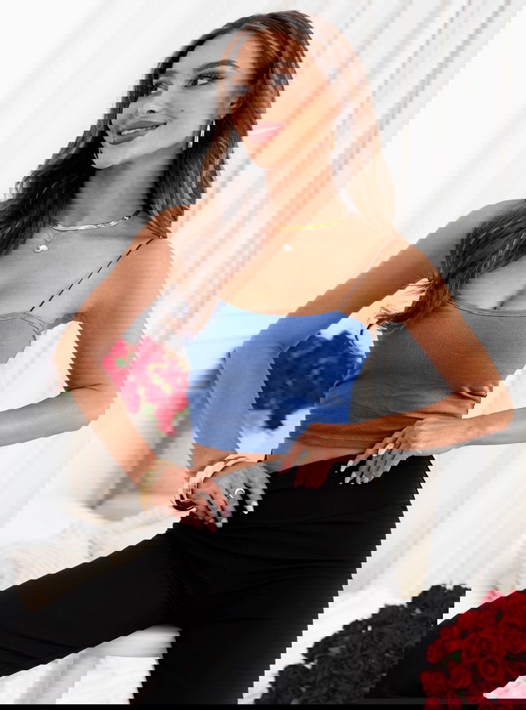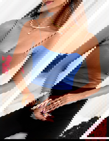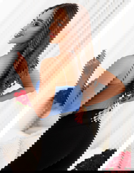 Niebieski biustonosz typu crop top Smellok to świeża, nowoczesna propozycja, która łączy prostotę formy z wyrazistym kolorem. Cienkie ramiączka i dopasowany krój tworzą lekką, kobiecą linię, która naturalnie podkreśla górę sylwetki. Model dobrze układa się na ciele i daje poczucie komfortu przez cały dzień. Niebieski odcień ożywia stylizację i dodaje jej charakteru.