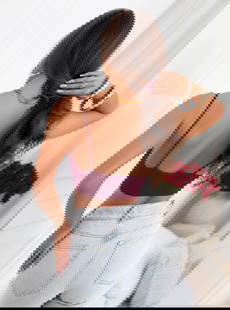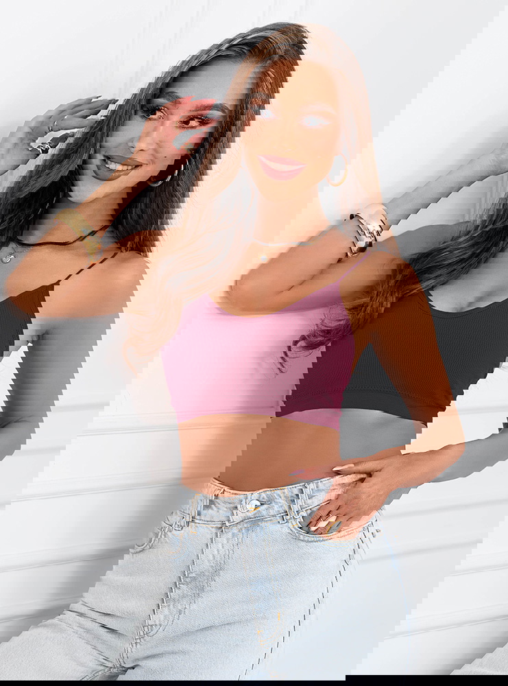 Bordowy stanik typu crop top Forienna to wyrazista, ale wciąż bardzo spójna propozycja, która przyciąga uwagę kolorem i czystą formą. Krótki, dopasowany fason ładnie układa się na sylwetce, a cienkie ramiączka nadają całości lekkości i kobiecego charakteru. Bordowy odcień dodaje stylizacji głębi i sprawia, że nawet proste zestawy wyglądają bardziej dopracowanie.