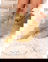 Materiał jest przyjemny w dotyku, a wykończenie zapewnia dobre dopasowanie bez ucisku. Skarpetki miękko otulają stopy i świetnie sprawdzają się podczas domowego relaksu, leniwych poranków lub spokojnych wieczorów pod kocem.