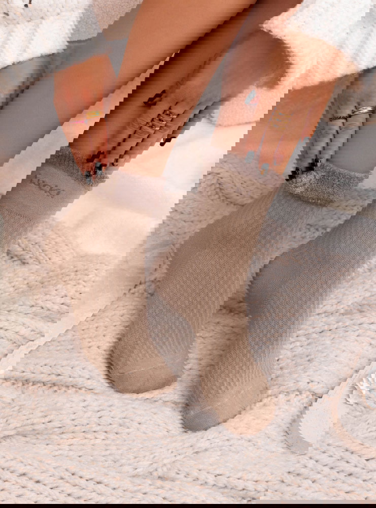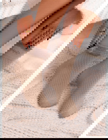 Beżowe skarpetki z ozdobnym napisem Hayden to subtelna i bardzo uniwersalna propozycja, która doskonale wpisuje się w spokojną, neutralną estetykę. Beżowy odcień prezentuje się miękko i naturalnie, a kontrastowy ściągacz z delikatnym napisem dodaje całości nowoczesnego, ale nienachalnego charakteru. Skarpetki wyglądają estetycznie i łatwo stają się spójnym elementem codziennych stylizacji.