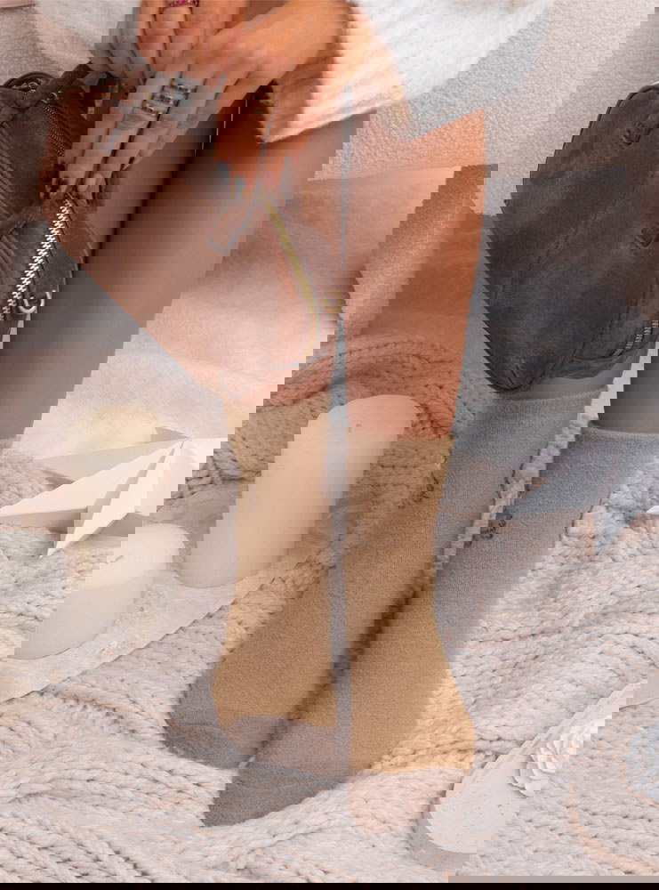 Skarpetki z ozdobnym motywem Jonathena – wzór 1 to przytulna propozycja, która łączy ciepłą kolorystykę z uroczym, dekoracyjnym detalem. Naturalny, beżowy odcień prezentuje się miękko i spokojnie, a ozdobny motyw dodaje całości subtelnego charakteru. Całość wygląda estetycznie i bardzo harmonijnie, idealnie wpisując się w domowy, komfortowy klimat.