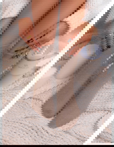 Skarpetki z ozdobnym motywem Jonathena – wzór 5 to przytulna propozycja utrzymana w spokojnej, naturalnej tonacji, która idealnie wpisuje się w klimat domowego komfortu. Ciepły, beżowo-taupe odcień prezentuje się miękko i harmonijnie, a delikatny, ozdobny motyw nadaje całości subtelnego uroku. Skarpetki wyglądają estetycznie i tworzą wrażenie dopracowanego, ale bardzo swobodnego dodatku.