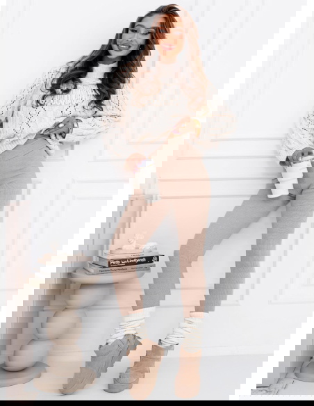 Legginsy dopasowują się do ciała w sposób płynny i komfortowy, dzięki czemu wyglądają lekko i harmonijnie w każdej stylizacji. Elastyczna forma sprawia, że materiał pracuje razem z ruchem, zapewniając swobodę noszenia i wygodę przez cały dzień. To model, który sprawdzi się zarówno w domowym wydaniu, jak i w codziennych, dopracowanych zestawach.