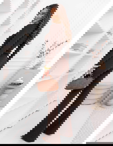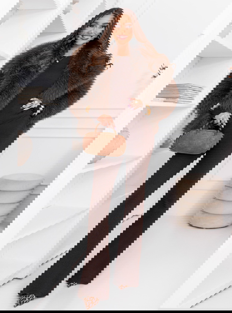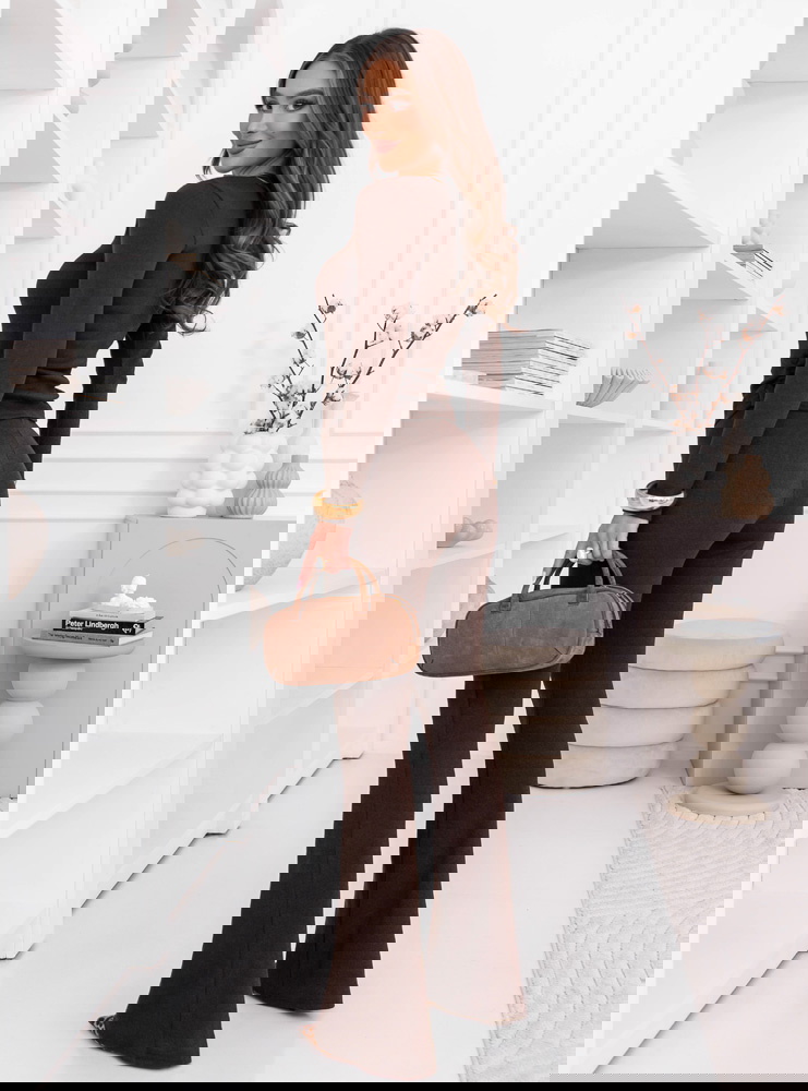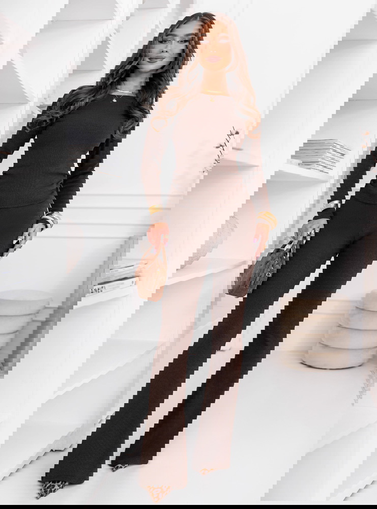 Bluzka miękko układa się na górnej części sylwetki, a spodnie podkreślają nogi i równoważą proporcje całego zestawu. Komplet dopasowuje się do ciała w naturalny sposób, a elastyczna forma sprawia, że materiał pracuje razem z ruchem, zapewniając komfort noszenia przez cały dzień. To model, który wygląda efektownie bez nadmiaru dodatków i daje dużą swobodę stylizacyjną.