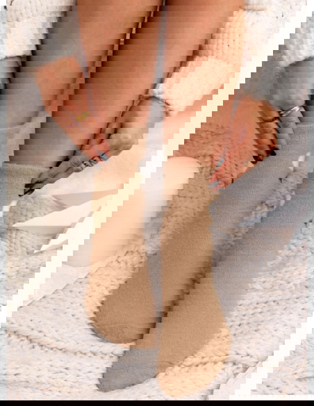 Miła w dotyku struktura sprawia, że skarpetki zapewniają wyjątkowe uczucie komfortu przez cały dzień. Przyjemnie dopasowują się do stopy i sprawdzą się zarówno w domowym wydaniu, jak i jako ciepły akcent do casualowych stylizacji. Ich stonowana kolorystyka pozwala łatwo łączyć je z jasnymi kompletami, legginsami czy swetrami.