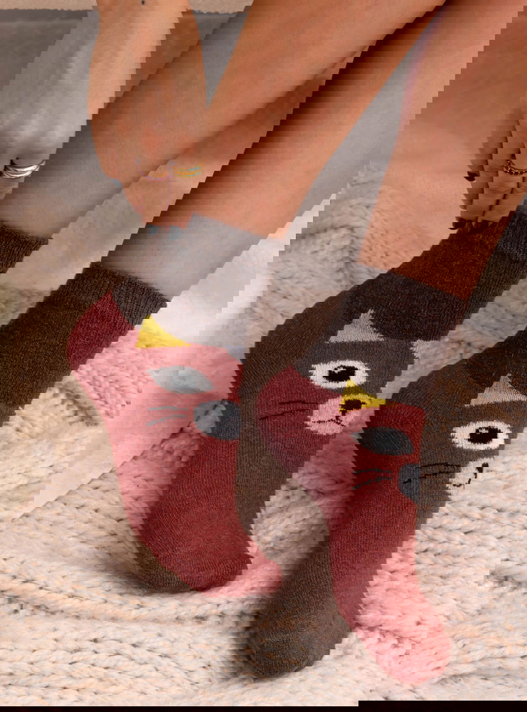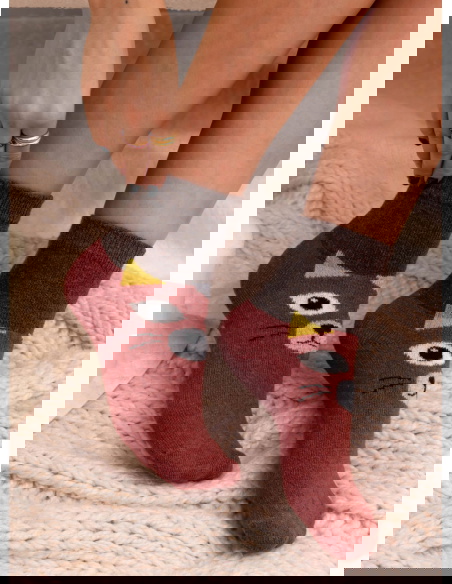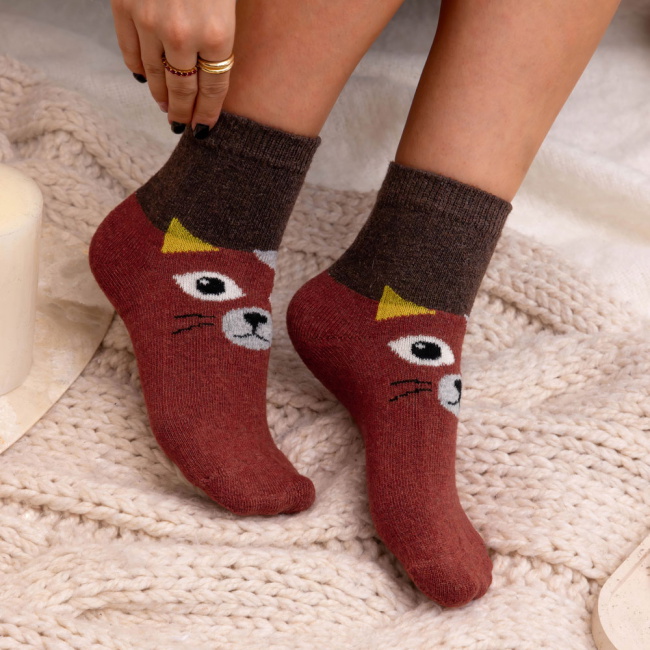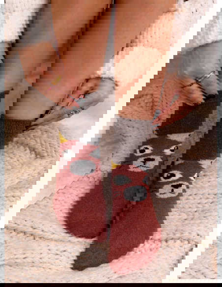 Miękka, przyjemna w dotyku dzianina zapewnia komfort przez cały dzień. Elastyczna struktura dobrze dopasowuje się do stopy, dzięki czemu świetnie układają się na nodze i nie powodują ucisku. Sprawdzą się zarówno w domowym relaksie, jak i jako oryginalny akcent w codziennych zestawach.