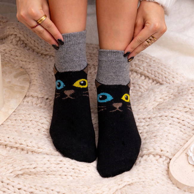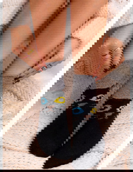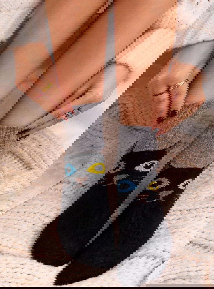 Miękka, przyjemna w dotyku dzianina zapewnia komfort noszenia przez cały dzień. Elastyczne wykończenie dobrze dopasowuje się do stopy, dzięki czemu skarpetki pozostają na swoim miejscu i nie powodują ucisku. Sprawdzą się zarówno w domowych stylizacjach, jak i jako ciekawy detal do casualowych zestawów.
