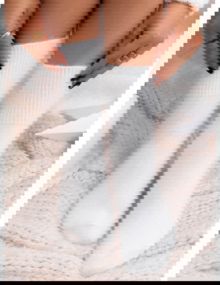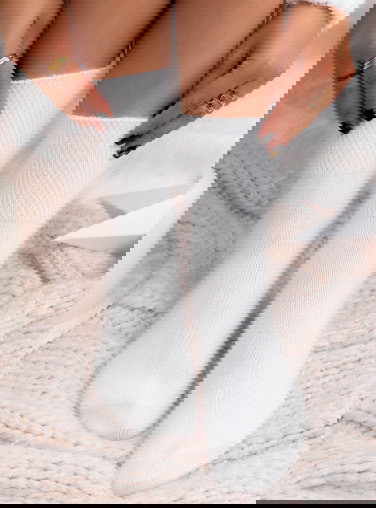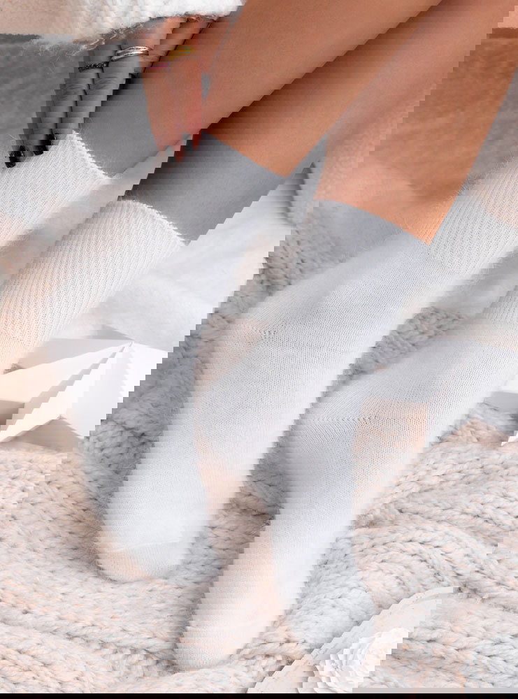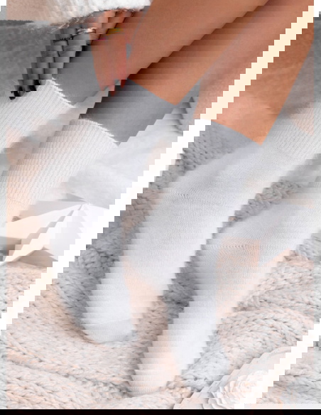Białe miękkie skarpetki damskie Dorale to klasyczna propozycja w minimalistycznym wydaniu, która sprawdzi się w każdej garderobie. Gładki fason i uniwersalny kolor sprawiają, że pasują zarówno do sportowych, jak i domowych stylizacji. Subtelny, prążkowany ściągacz nadaje im uporządkowany wygląd i dobrze utrzymuje je na miejscu.