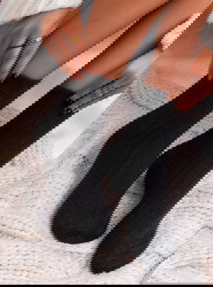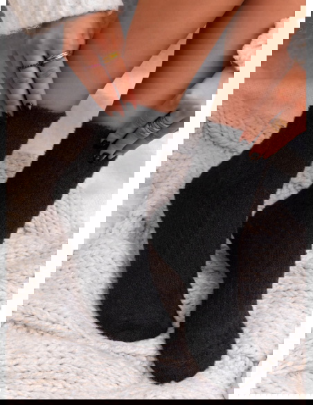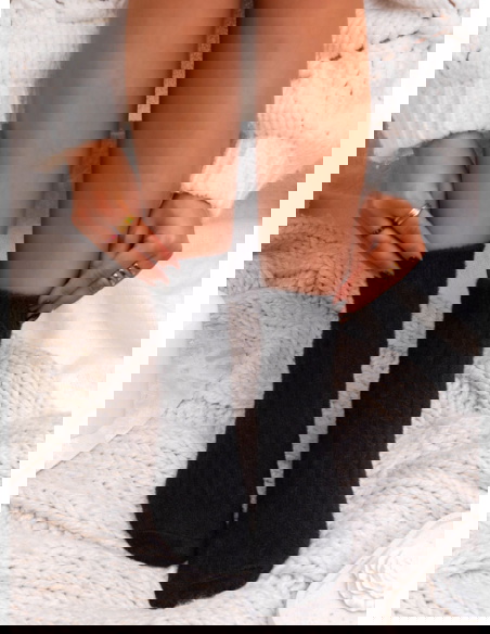 Czarne ocieplane skarpetki Kirimaa to klasyczna i ponadczasowa propozycja na chłodniejsze dni. Głęboka czerń w połączeniu z miękką, puszystą dzianiną tworzy model, który łączy wygodę z uniwersalnym stylem. Delikatne prążkowanie dodaje im subtelnej struktury i sprawia, że świetnie prezentują się zarówno w domowym, jak i codziennym wydaniu.