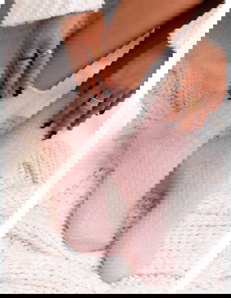 Pudrowe ocieplane skarpetki Kirimaa to subtelna i kobieca propozycja na chłodniejsze dni. Delikatny, pudrowy odcień pięknie komponuje się z jasnymi stylizacjami, a miękka, puszysta dzianina przyjemnie otula stopy. Klasyczne prążkowanie nadaje im ponadczasowego charakteru i sprawia, że świetnie dopasowują się do nogi.