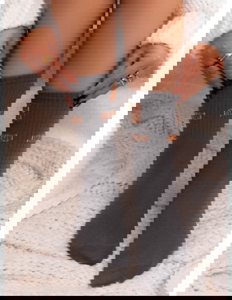 Grafitowe skarpetki z ozdobnym wzorem Jasmynne to nowoczesna propozycja w stonowanym, głębokim odcieniu, który świetnie wpisuje się w minimalistyczne stylizacje. Kontrastowy, ozdobny napis przy górnej części nadaje im modowego charakteru i subtelnie przyciąga wzrok. To model, który łączy wygodę z wyrazistym detalem.