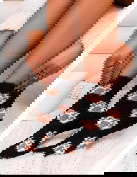 Czarne miękkie skarpetki damskie Deaestaa to przytulny model o wyrazistym charakterze, który łączy głęboką czerń z kontrastowym, powtarzalnym wzorem. Puszysta struktura nadaje im miękkości i sprawia, że prezentują się niezwykle efektownie. To propozycja, która przyciąga uwagę i wprowadza do stylizacji odrobinę swobodnego luzu.