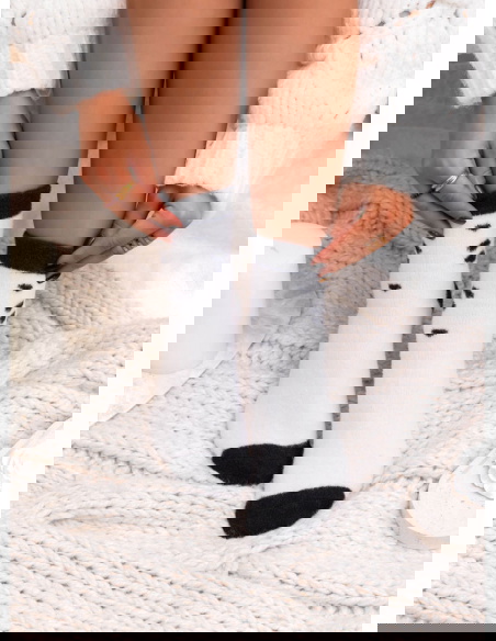 Skarpetki z ozdobnym motywem Aneissa - wzór 2 to urocza propozycja, która łączy kontrastową kolorystykę z delikatnym, zabawnym akcentem. Jasna baza przełamana czarnymi detalami nadaje im wyrazistości, a subtelny motyw sprawia, że całość prezentuje się lekko i dziewczęco. To model, który od razu przyciąga spojrzenia, ale wciąż pozostaje uniwersalny.
