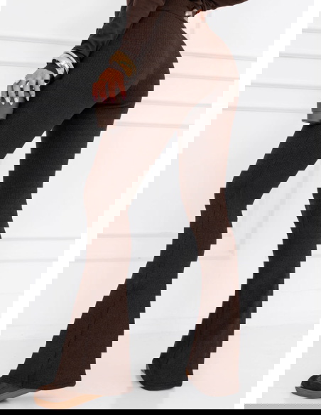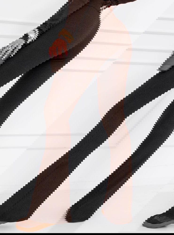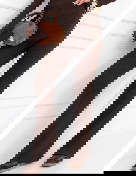 Czekoladowe prążkowane spodnie z rozszerzanymi nogawkami Claudean
