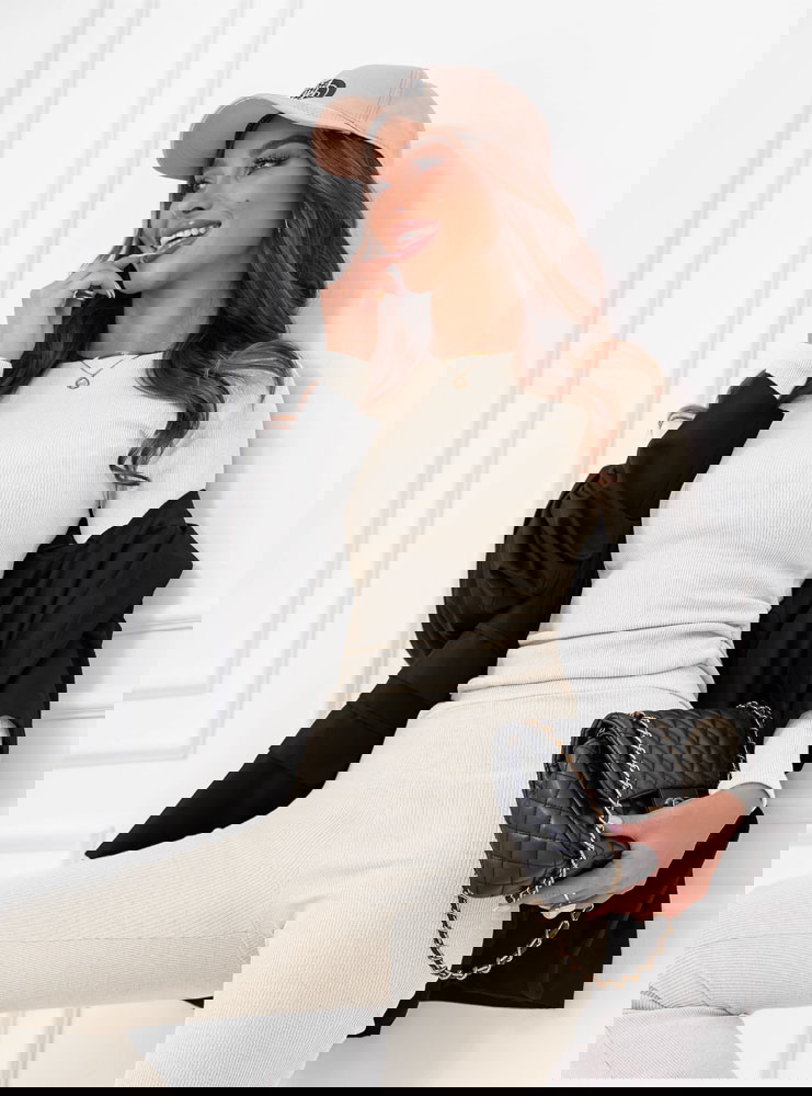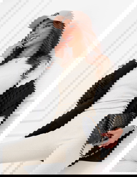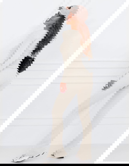 Prążkowany komplet dopasowana bluzka i spodnie Amirallia – mleczna biel to minimalistyczna baza, która podkreśla sylwetkę i daje efekt dopracowanej stylizacji bez wysiłku. Dopasowany fason miękko układa się na ciele, a prążkowana struktura wysmukla i nadaje całości subtelnej głębi. Bluzka ma delikatne marszczenia po bokach, dzięki czemu lepiej dopasowuje się w talii i podkreśla kobiece proporcje. Spodnie z rozszerzaną nogawką wydłużają nogi i równoważą linię sylwetki. Mleczna biel wygląda świeżo, czysto i bardzo nowocześnie.