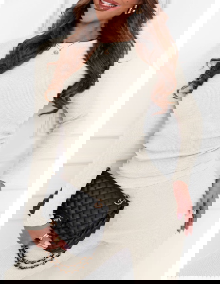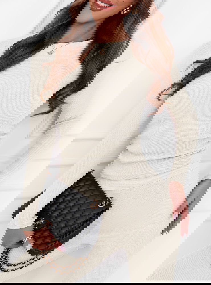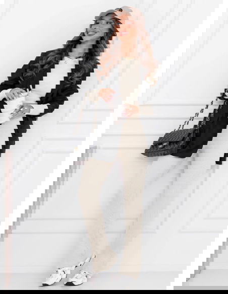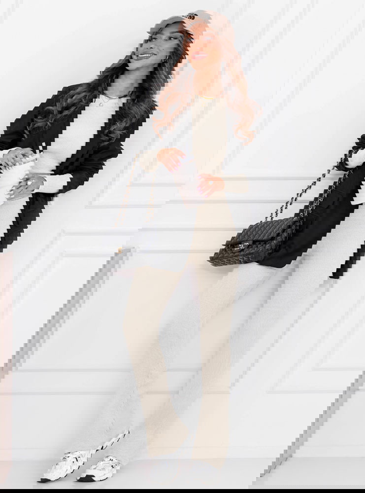 Komplet jest wygodny, elastyczny i przyjemny w noszeniu przez cały dzień. Sprawdza się zarówno solo, jak i w połączeniu z klasycznymi dodatkami. To propozycja, która łączy komfort z kobiecym, dopracowanym wyglądem.