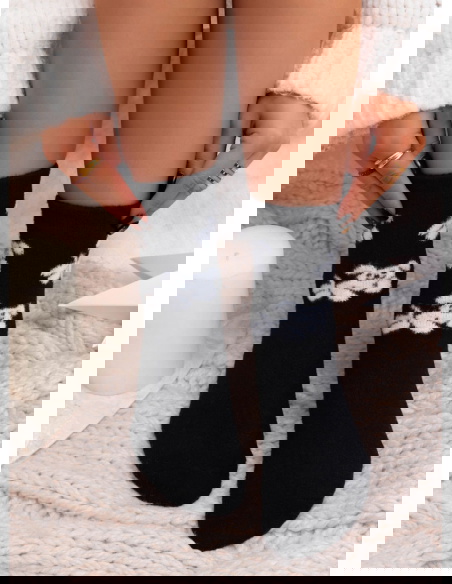 Skarpetki z ozdobnym wzorem Doniece – wzór 1 to model, który łączy klasyczną czerń z subtelnym, jasnym akcentem. Kontrastowy wzór dodaje im charakteru, a jednocześnie pozostaje na tyle delikatny, że łatwo dopasować je do codziennych stylizacji. To propozycja dla osób, które lubią proste formy z wyrazistym detalem.