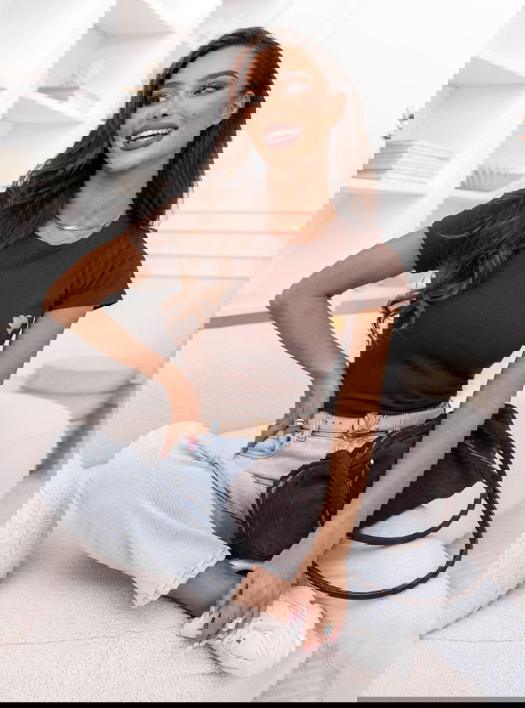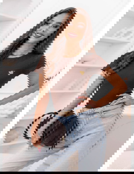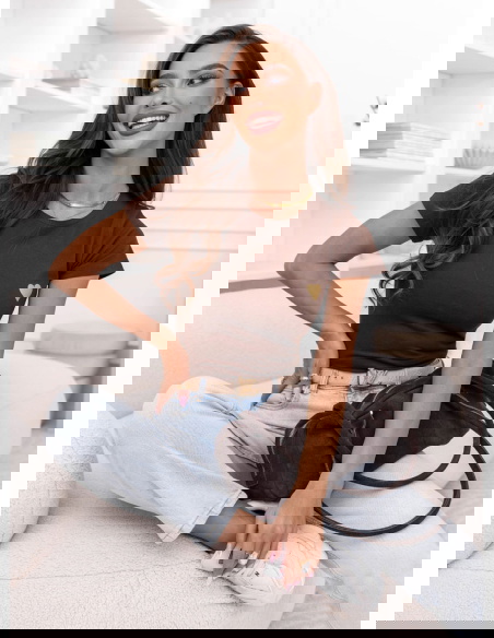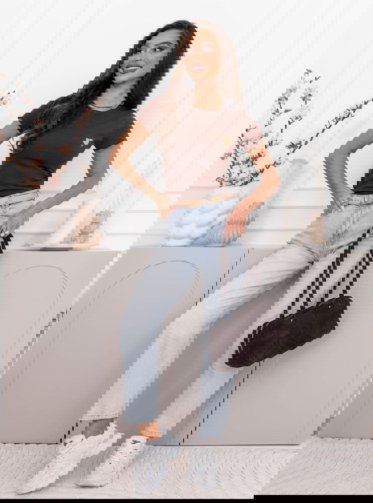Czekoladowa koszulka na krótki rękaw z ozdobnym nadrukiem Jazmyn