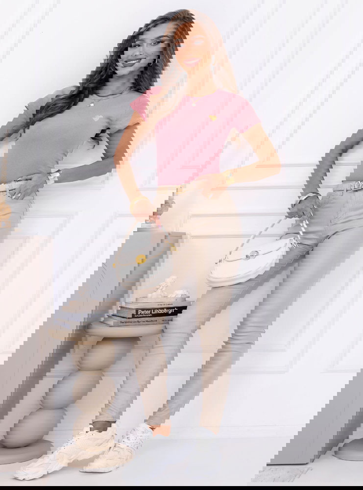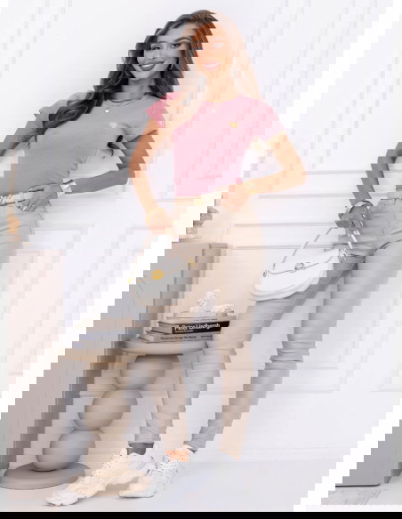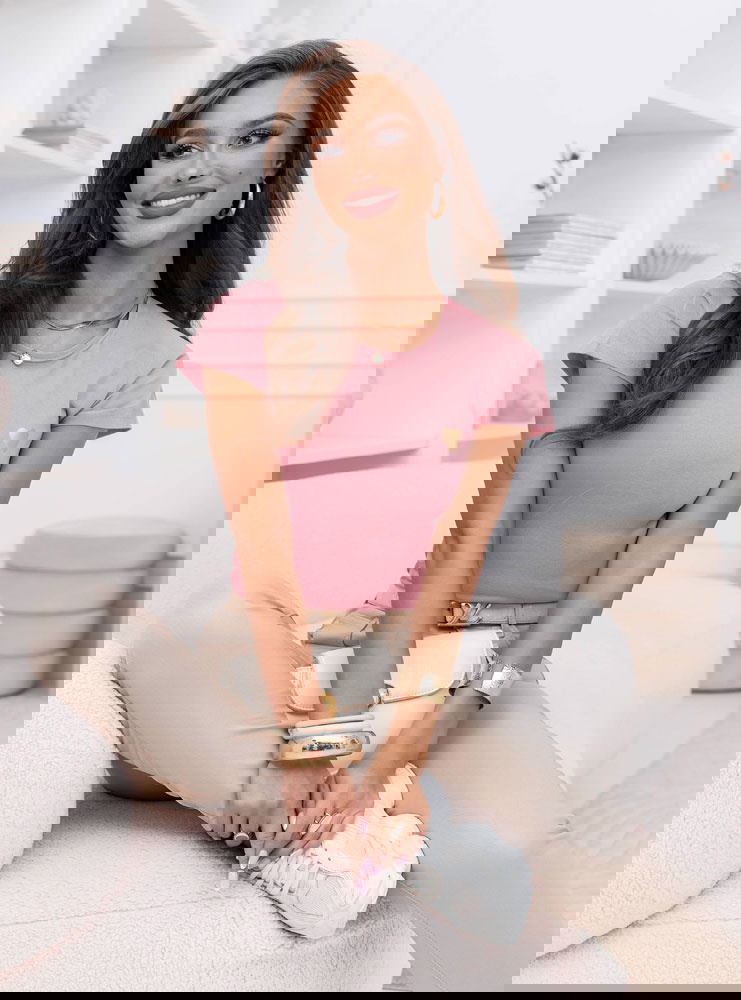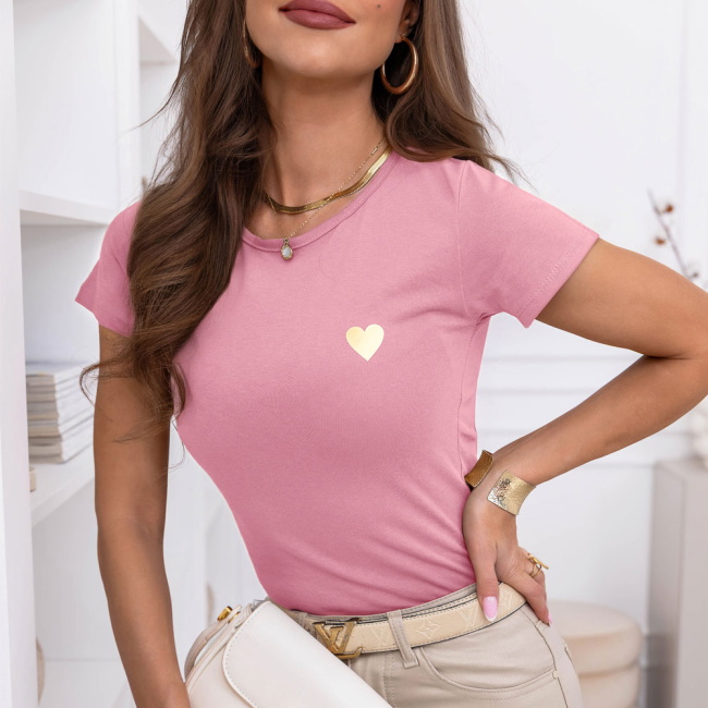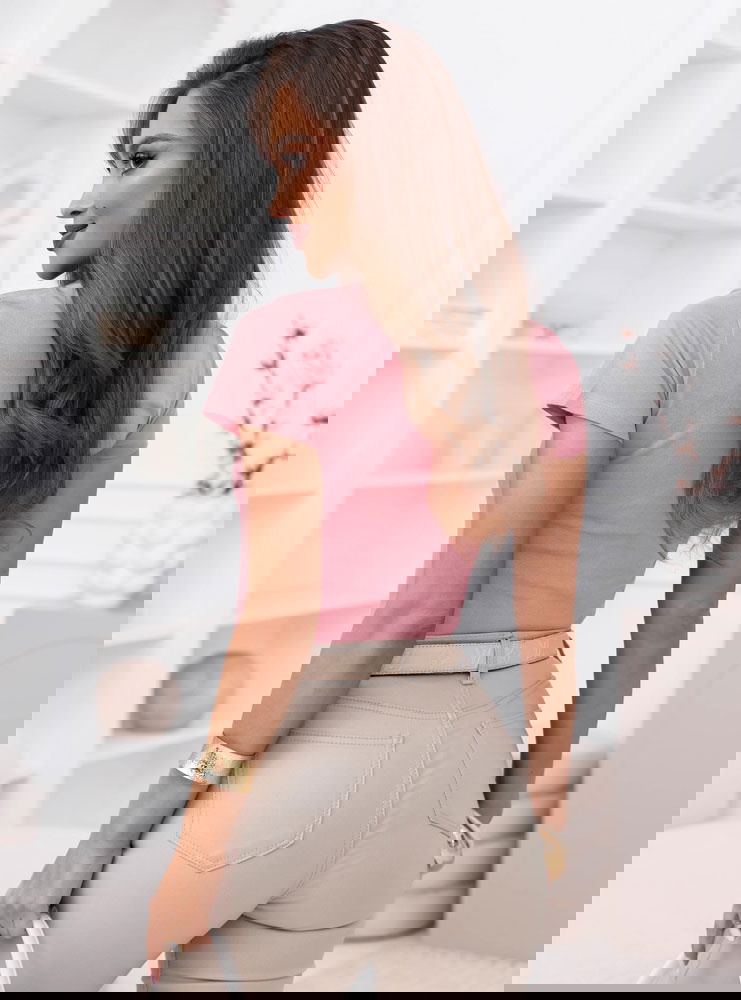 Pudrowa koszulka na krótki rękaw z ozdobnym nadrukiem Jazmyn